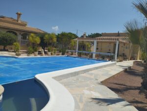 Amplio chalet compuesto de 3 habitaciones, cocina / salón , galería ,trastero, porche acristalado, caseta de herramientas , caseta jacuzzi, parking , piscina de 5 x 10m y solárium , calefacción de gasoil , aire acondicionado y calentador solar.